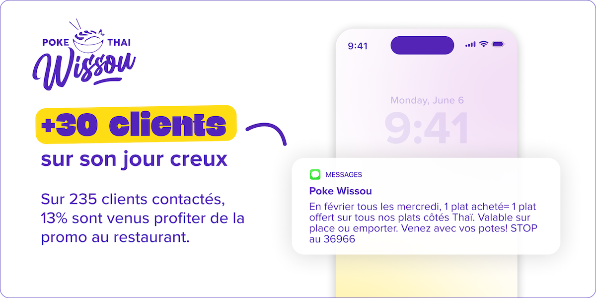 Ça fait longtemps qu’on ne vous a pas vu… On se retrouve pour le déjeuner ? On vous offre un smoothie ou un dessert sur présentation de ce SMS