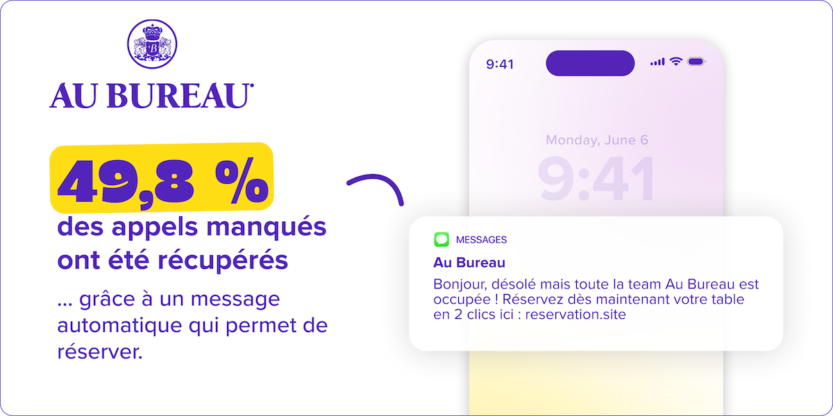 Ne perdez plus de clients quand vous ne pouvez pas répondre ! Envoyez un SMS automatique avec le lien de réservation.