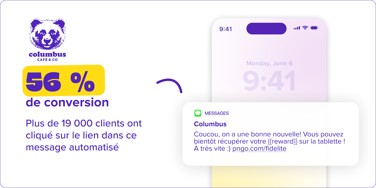 Les messages liés au programme de fidélité ont d’excellents taux de conversion. Informez vos clients de leurs points ou récompenses.